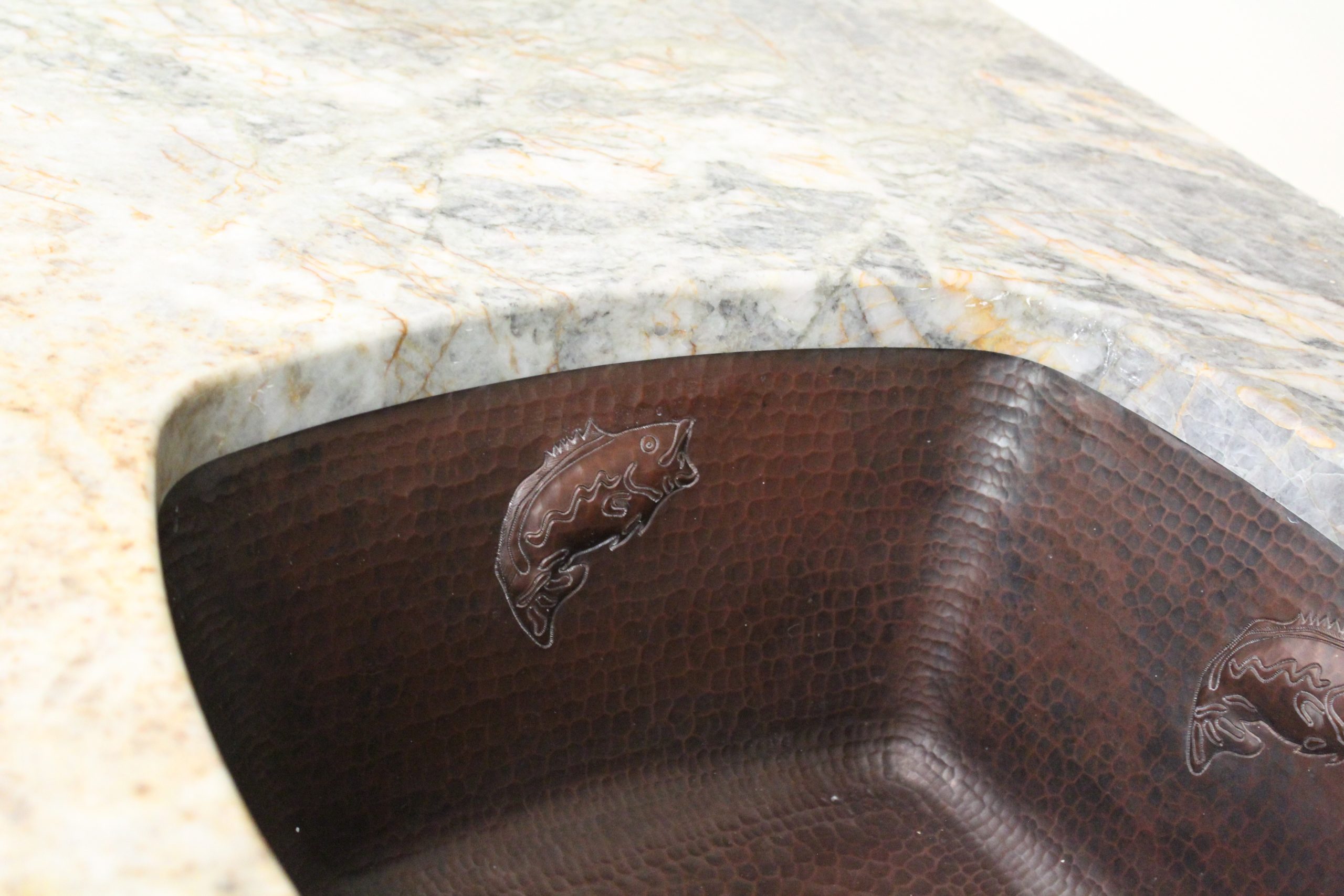 I love this copper sink in the wet bar it adds an element of surprise when you are at the wet bar.